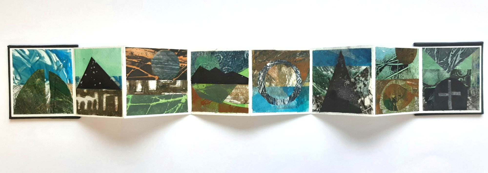 Original Hand Printed Paper/Collage Concertina Book 8.5 cm x 60 cm open 8.5 cm cm x 8 cm closed